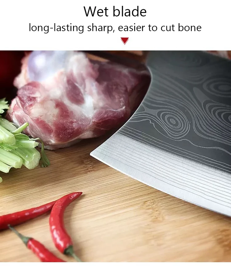 Информация о товаре: Наименование: разделочный нож Размер: как показано на рисунке Упаковка: нож 1 шт Примечание: 1. Замеры сделаны вручную, поэтому возможны незначительные отклонения в размерах. 2. Зерно лезвия ножа-лазерные Прожилки.