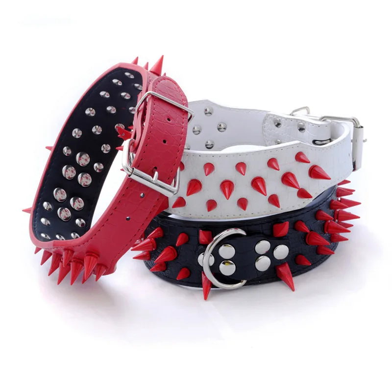 Новый модный ошейник для собак в стиле панк с шипами и заклепками, ошейники для больших собак из искусственной кожи, 6 цветовUS $11,00 Долларов США/шт