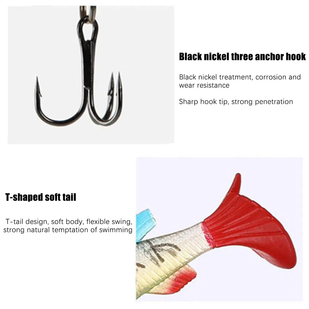 Реалистичный дизайн изготовлен из мягкого резинового материала с довольно высоким качеством. Он имеет яркий внешний вид и приятный на ощупь. Глаза и тела покрыты светящимся материалом Подходящие водные зоны реки/озера/резервуар/мореВ комплект входят: окунь, рот, сома, форель, красный плавник, лосось, Бонито, маленький тунец, сардины, скумбрия, кальмар и другие рыбы.