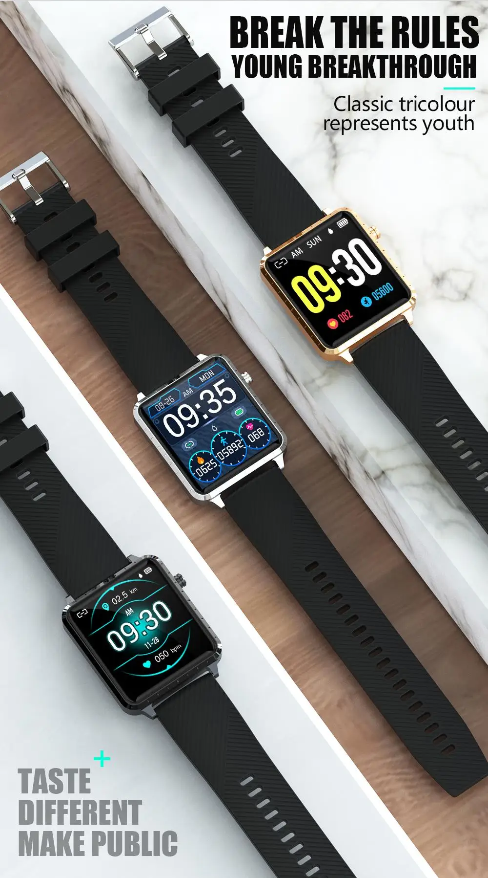 Blood pressure detection Timer Pedometer Calorie Consumption Distance Calculation Heart rate Sleep detection (Sleep time ,Sleep quality) On & Off dispaly Sleep detection (Sleep time ,Sleep quality) Calls to remind,SMS Reminder,Third-party messaging reminder Multilingual push Third-party messaging reminder Multilingual push Alarm Clock ,stopwatch Remote Camera Sedentary reminder