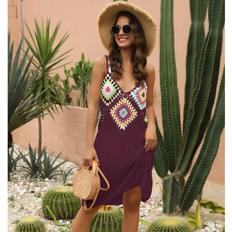 Женская вязаная крючком пляжная Летняя туника накидка Длинная вязаная пляжная одежда купальник накидка платья