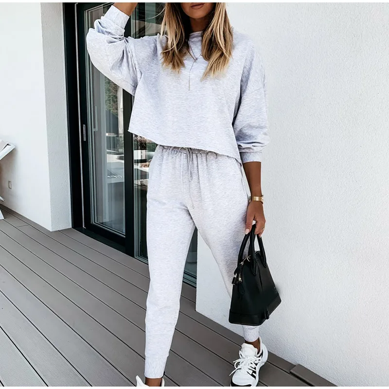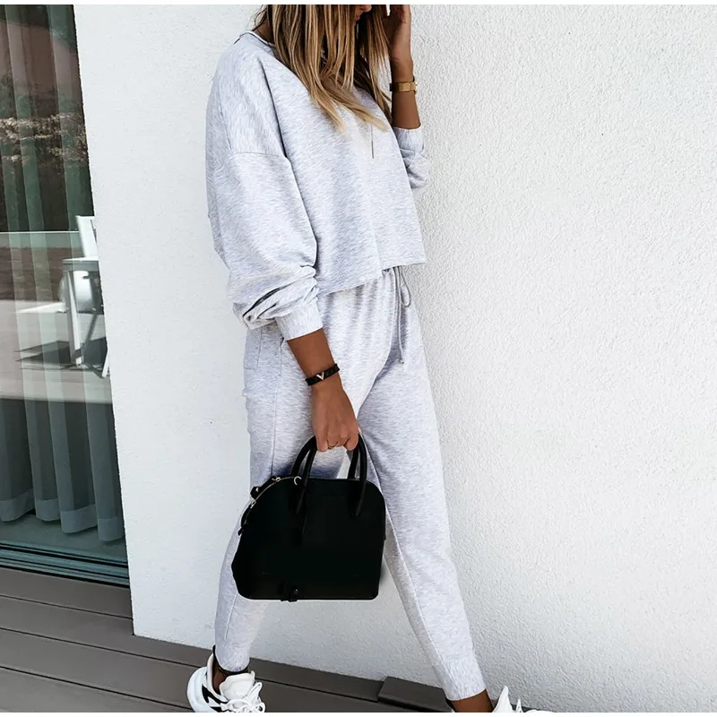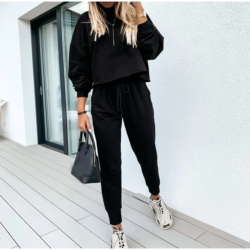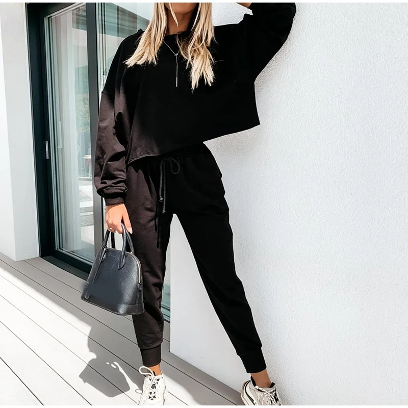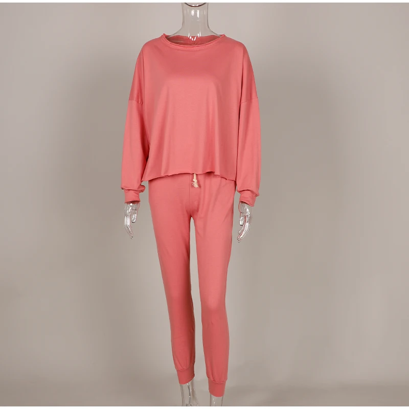 Весенний женский спортивный костюм, комплект из двух предметов, женский свитер с длинным рукавом и открытыми плечами, костюм со шнуровкой, длинные штаны, женские костюмы