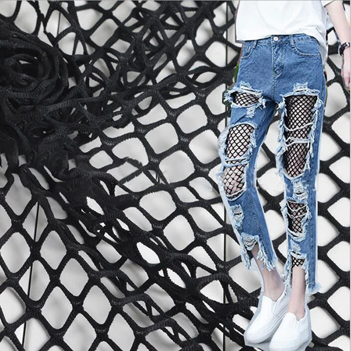Сетчатая Ткань, черно-белая эластичная большая сетчатая ткань, полый джемпер, рваные джинсовые штаны, ажурные 200802