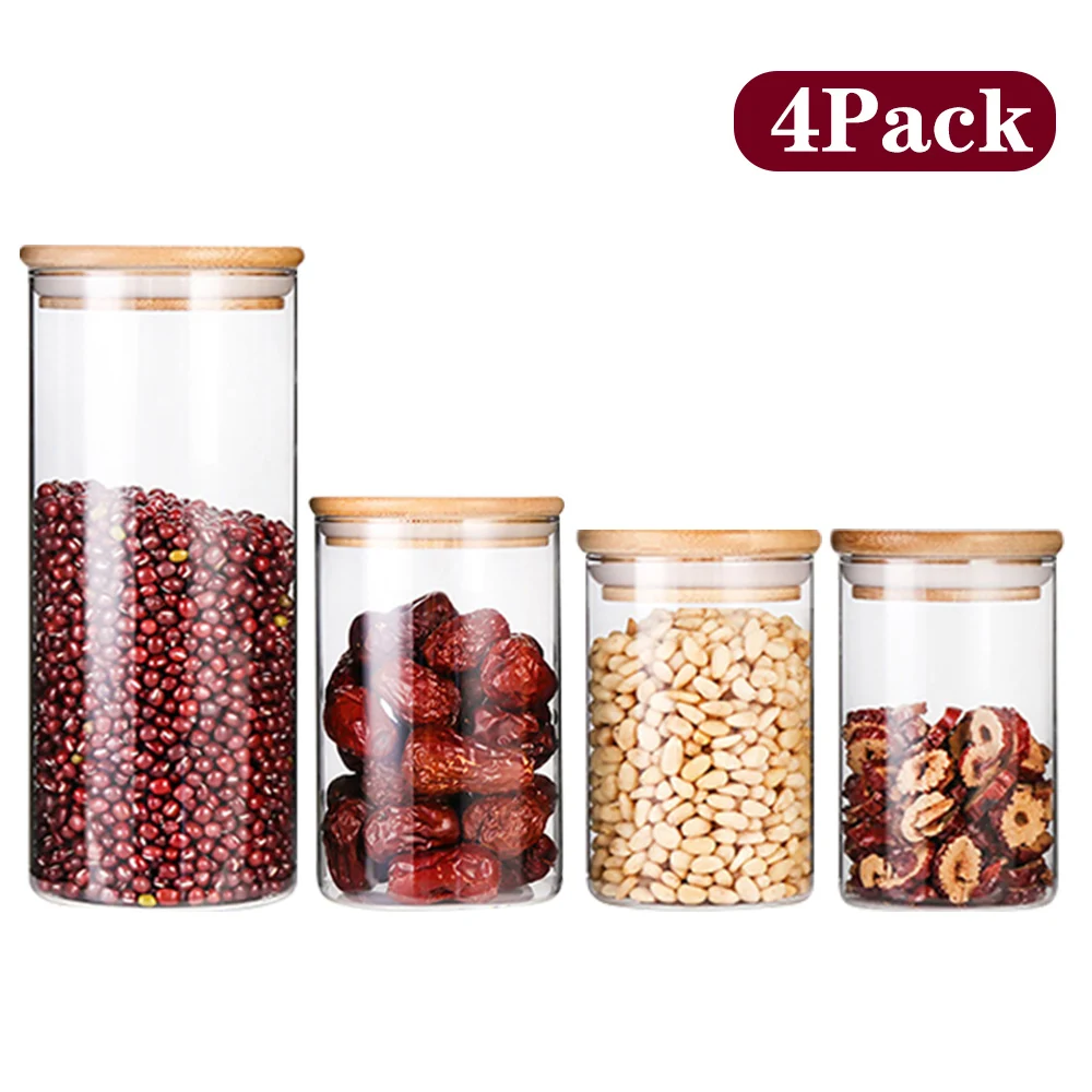 Многофункциональная домашняя коробка для хранения пищевых продуктов, прозрачная стеклянная деревянная герметичная коробка с крышкой, кухонные кофейные банки для бобовых, герметичные банки с крышкой