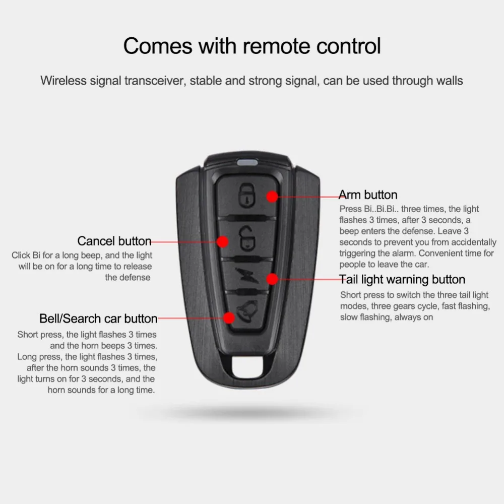 * 2. Защита одной кнопкой, точный и стабильный пульт дистанционного управления от 0-50 метров, высокая чувствительность, 105-108 децибел громкости будильника.