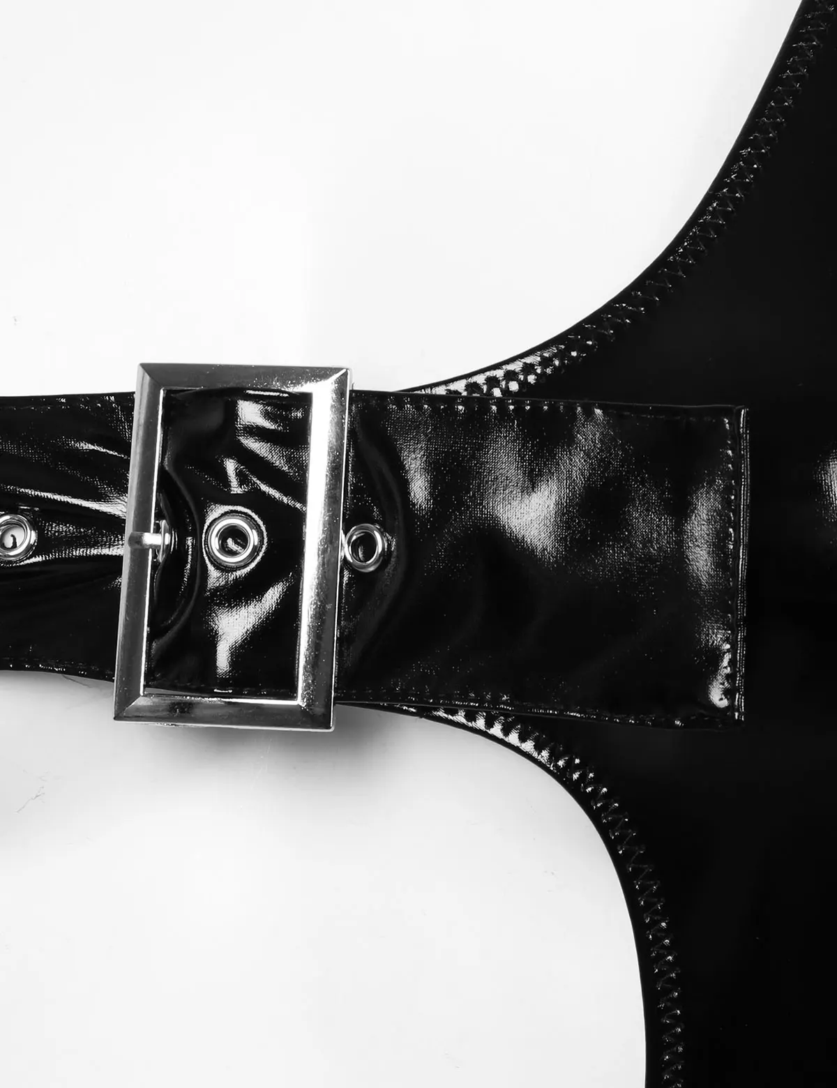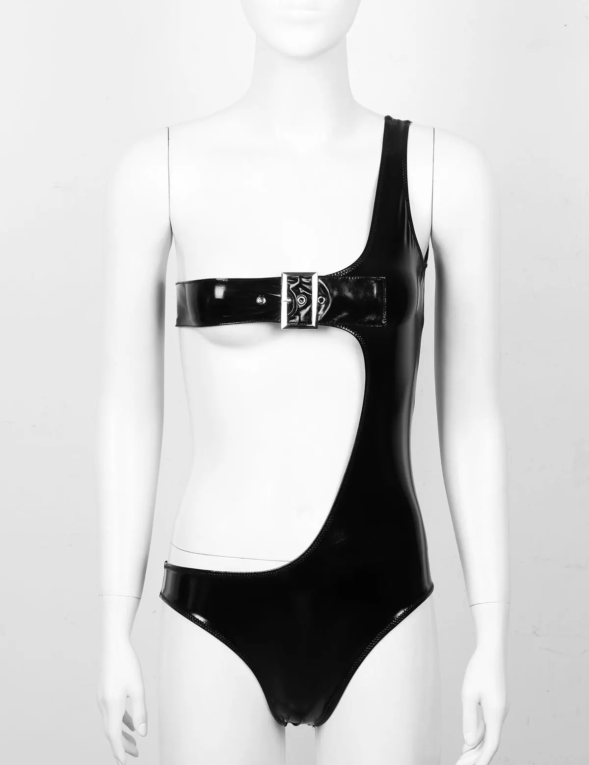 Без рукавов и с одним плечом, половина тела выдалбливается с регулируемой пряжкой на груди, с высокими вырезами на ногах.