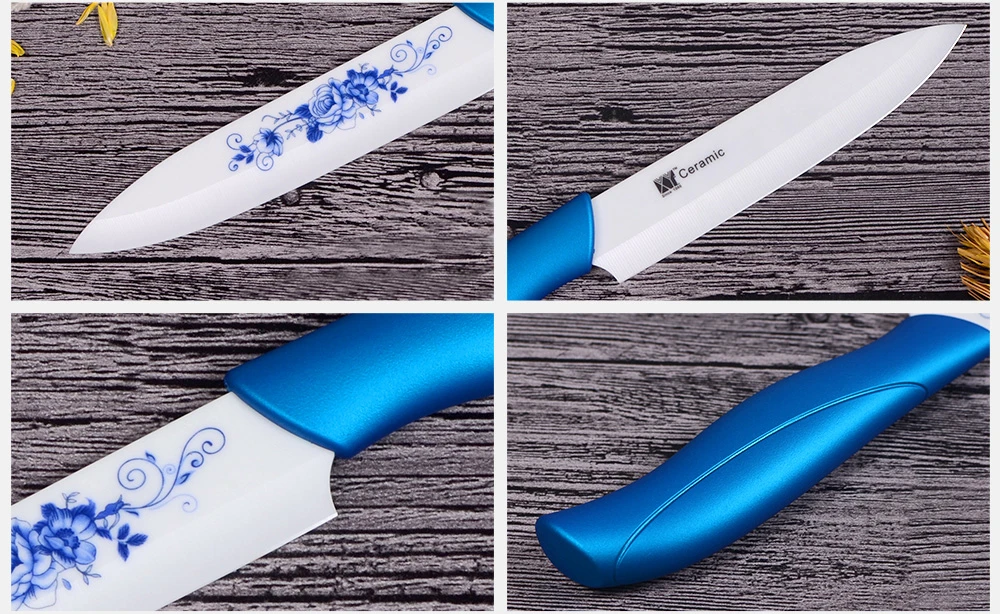 XYj Керамика нарезки шеф-повара Ножи 3 "4" 5 "6" дюймов синей ручкой цветок лезвие Ножи Пособия по кулинарии Ножи кухонные инструменты-ножи Ножи инструменты для овощей