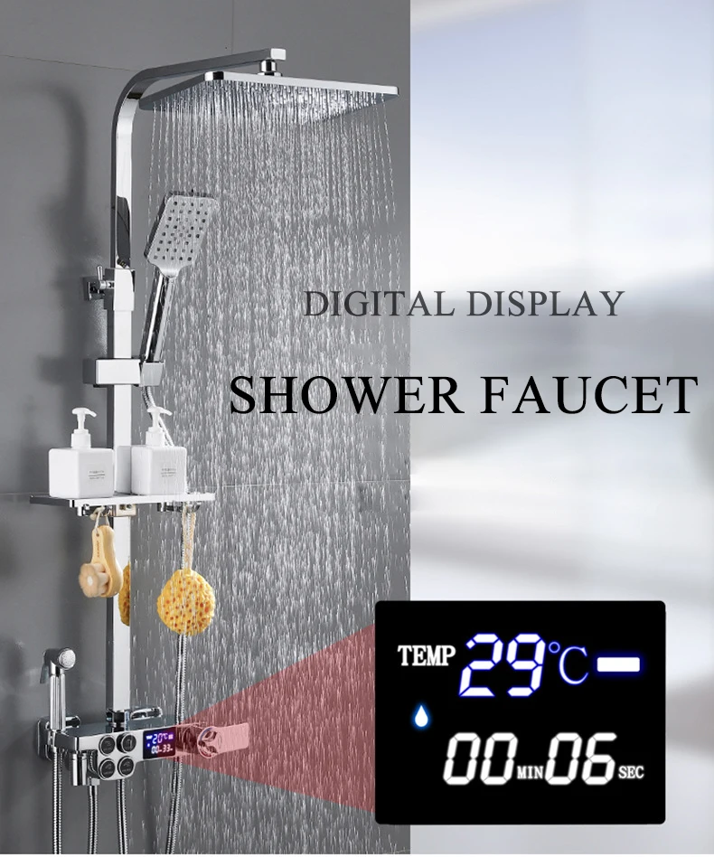 Bathroom Faucets Brass Chrome Shower Set Wall Mounted Digital Shower Mixer Tap Thermostatic Rain Mist Showers Modern Water Mixer