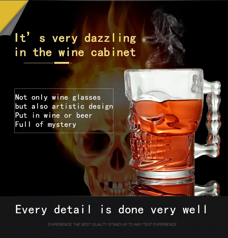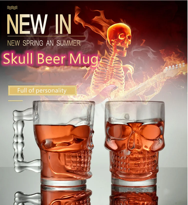 Стеклянная чашка для пива череп большая с ручкой пивной чай сок бокал для вина чашки для Хэллоуина вечерние стаканы для напитков стакан виски сигары кружки
