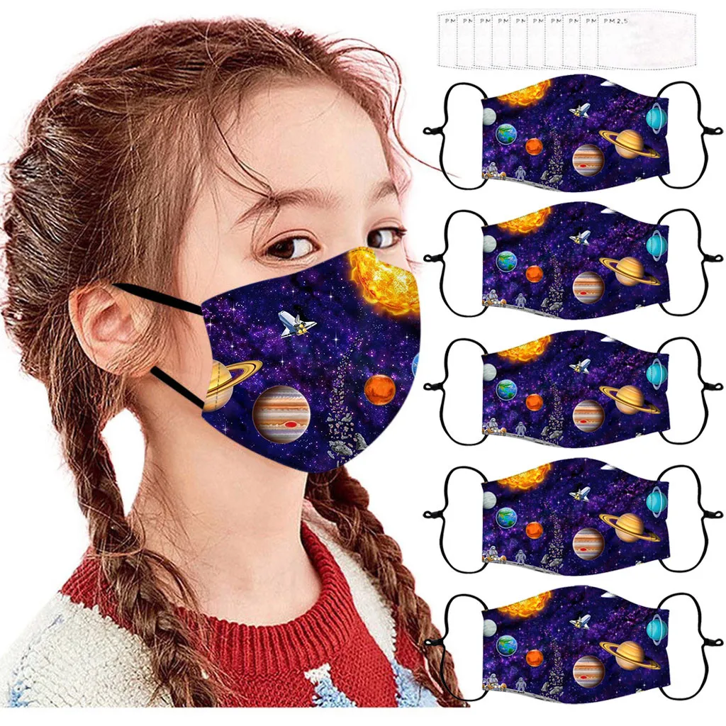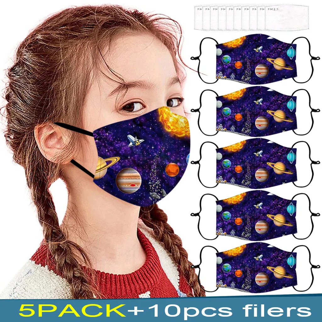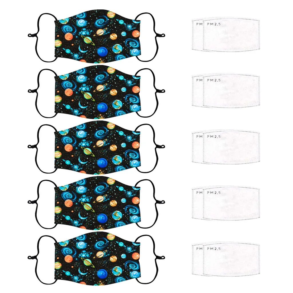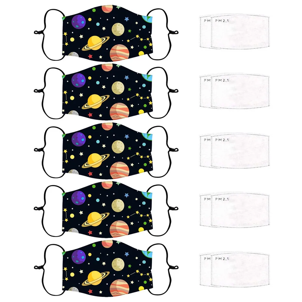 5 шт. детская Регулируемая ветрозащитная многоразовая маска для лица с принтом