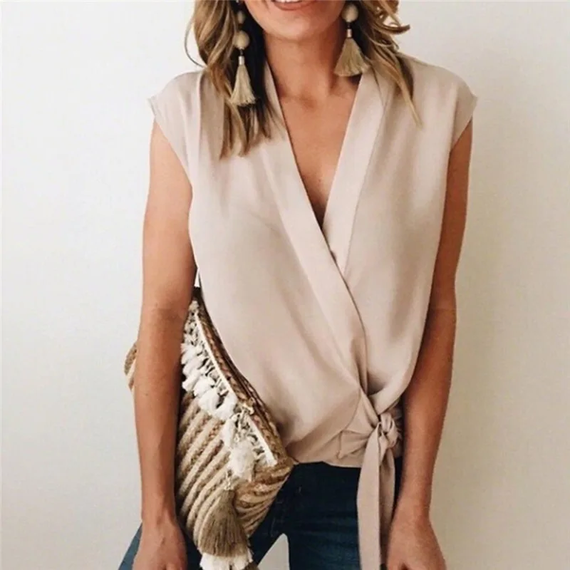 Женская блузка большого размера 2020, Женская однотонная шифоновая рубашка свободного покроя без рукавов