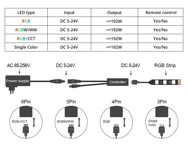 1. Рабочее напряжение: DC5-28V (5 В, 9 В, 12 В, 24 В и т. д.) 2. Выходной канал: канал RGB/RGBW 3. Выходной ток: RGB: 3A * 3, RGBW: 3A * 4 4. Метод подключения: общий анод 5. Расстояние: 50 м Макс. 6. Способ подключения: R, G, B, W светодиодный светильник, для источника питания, ANT для приема сигнала WIFI. 7. Программное обеспечение: Система Android (по крайней мере 2,3 Версия с функцией Wi-Fi) или система IOS. 8. Способ подключения: подключение к светодиодной ленте RGB/RGBW.