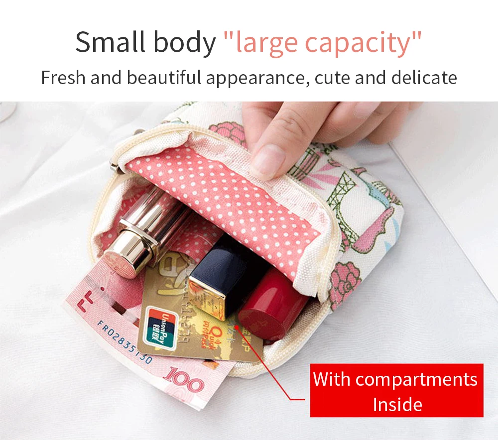 Материал: нейлон Размер: 11х12 см Цвет: как на картинке Посылка включает в себя: 1 мешок Особенности: Милый внешний вид, вы можете просто поместить свои личные вещи внутрь и решить любую проблему. Гладкая молния и круглая молния делают его более удобным и удобным для открытия и закрытия. Прочная и прочная ткань, не легко выцветает. Водонепроницаемый дизайн, решение большего количества проблем, подходит для использования в различных погодных условиях. Внутренний слой может надежно зафиксировать несколько мелких предметов, обеспечивая лучшую защиту и делая интерьер более аккуратным.
