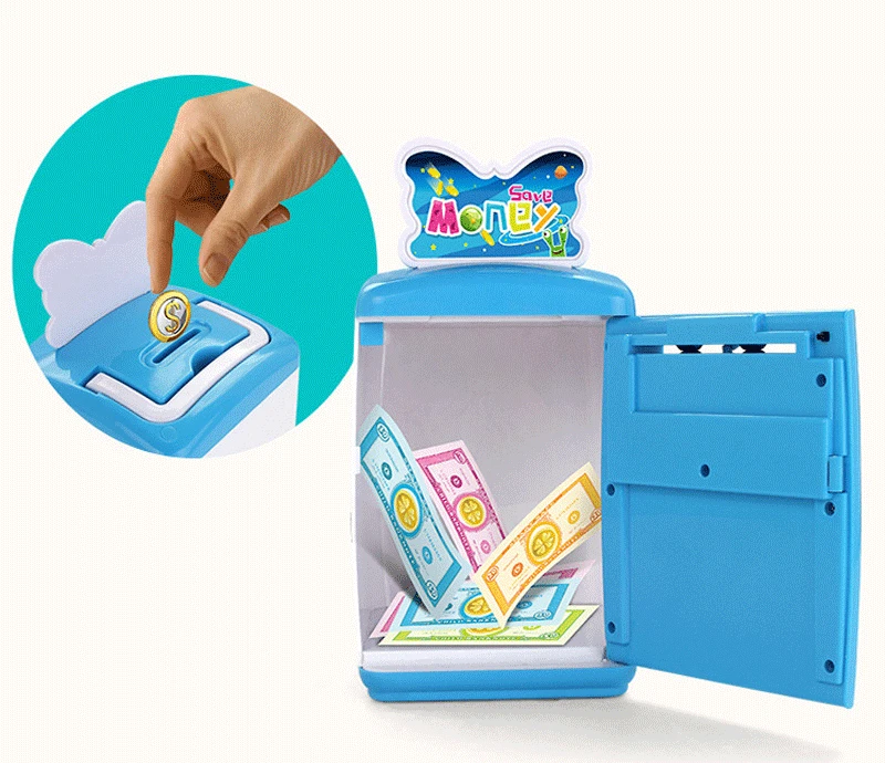 Автоматическое питание наличными и воспроизведение музыки, можно хранить монеты и наличные. Большой объем.