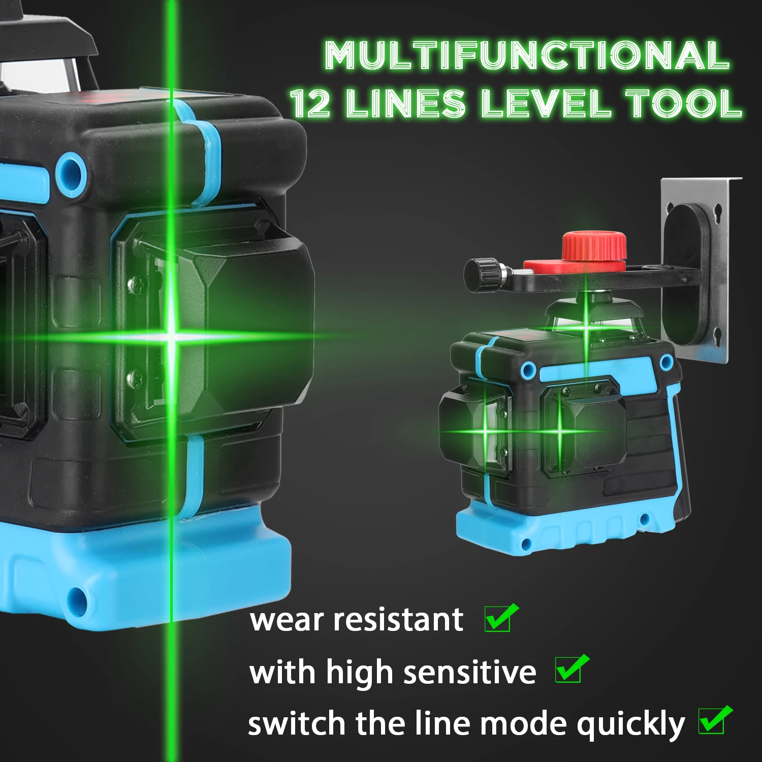 Это своего рода инструмент высокого качества, 3D 12 линий для более точного позиционирования, с самонивелирующейся системой, гибкостью и стабильностью. С вертикальными и горизонтальными лазерными линиями, удобство в использовании. Идеально подходит для различных видов применения, включая напольное покрытие, плитку, обшивку, обшивку стен, обшивку, отделку столярных изделий, обшивку стен и установку перегородок. Вы можете попробовать.