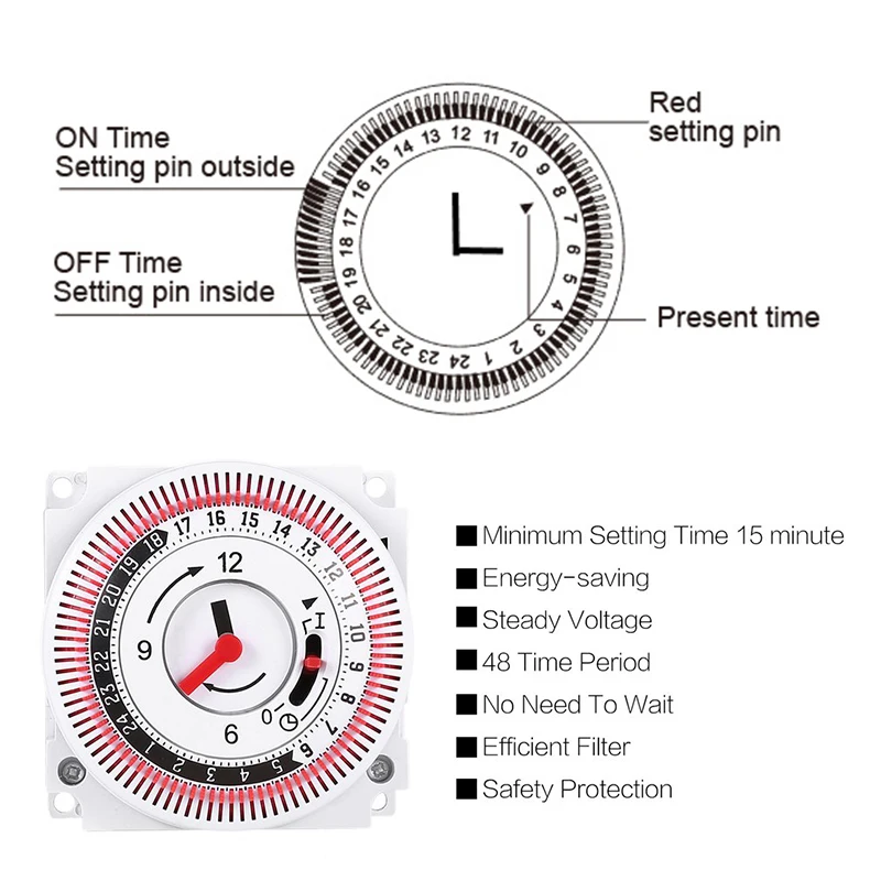 <Простота в использовании: Этот таймер оснащен простым в использовании встроенным контактным циферблатом, который позволяет установить таймер.