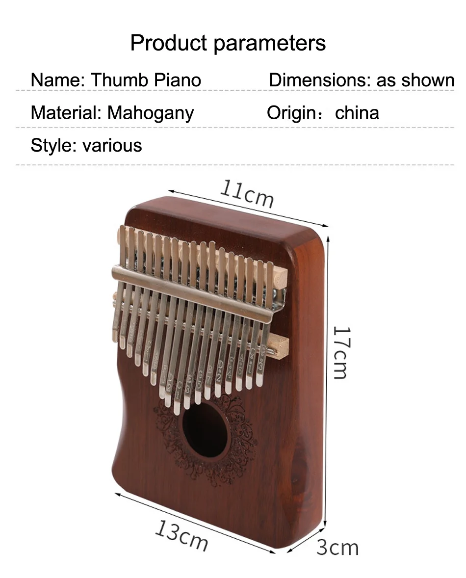 Описание товара 【 Высококачественные материалы 】 в отличие от других дешевых пальчиковых пианино, Seogol kalimba использует высококачественное твердое дерево окуме, делая резонансный ящик и углеродистая сталь, делая ключи, что обеспечивает лучший звук. 17 зубцов были тщательно настроены перед упаковкой, чтобы обеспечить хороший тон. И тон такой же, как у пианино, для международного стандарта C tune. 【Яркий и четкий звук 】 двойная консолидация ногтей делает калимбу чистым и мелодичным звуком., долговечным и 0 шумов. 17 стальных уплотненных зубов и твердой древесины тела для него, что делает резонанс более достаточным. Тембр кажется теплым, и звук длится долго. 【Легко Играть & CARRY】 с профессионально изготовленным брошюром калимба, даже если у вас нет никакой музыкальной основы, вы все равно можете играть на этом большом пальце пианино. Есть Выгравированные обозначения в зубцах, что делает его идеальным для начинающих и детей. Портативный размер ладони с сумкой для хранения, так что вы можете носить это Пальчиковое пианино везде, где вы идете и играете во время поездки. 【INTERNATIONAL C TUNE】 17 клавиш/Примечания: 1(D), 2(B), 3(G), 4(E), 5(C5), 6(A), 9(C4), 10(E), 11(G), 12(B), 13(D), 14(F), 15(A), 16(C6), 17(E). Отличный выбор для отдыха, декомпрессии, путешествий и т. д. лучший инструмент для производительности, записи, семьи, улицы, школы, вечерние и релаксации.