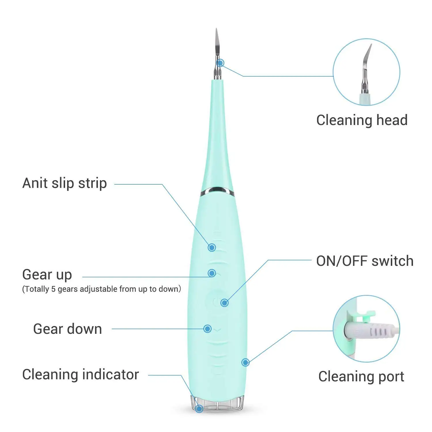 Электрический аппарат для удаления зубного камня, высокочастотный Вибрационный зубной камень скребок средства для удаления зубного камня для зубного камня, от зубных пятен, удаления зубного налета, 5 регулируемых режимов, питание от USB, синий