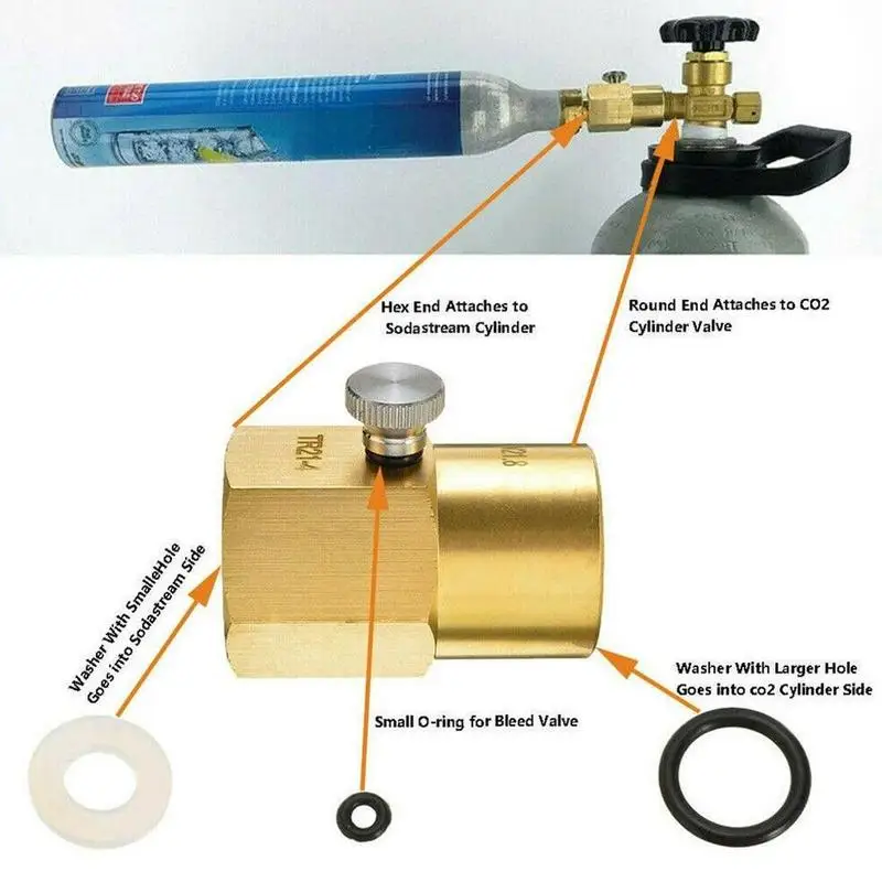 Этот простой в использовании адаптер для наполнения цилиндров SodaStream позволит вам Заполнить свой собственный CO2 от вашего большого цилиндрического цилиндра в меньшие SodaStream цилиндры.