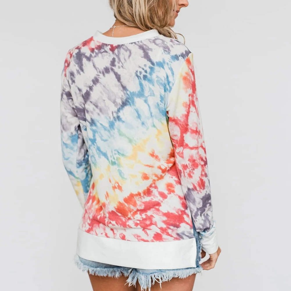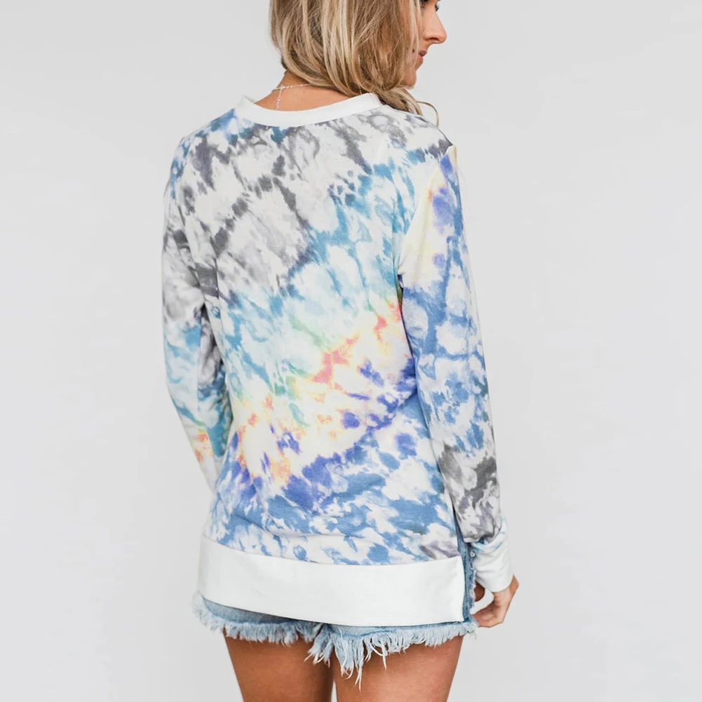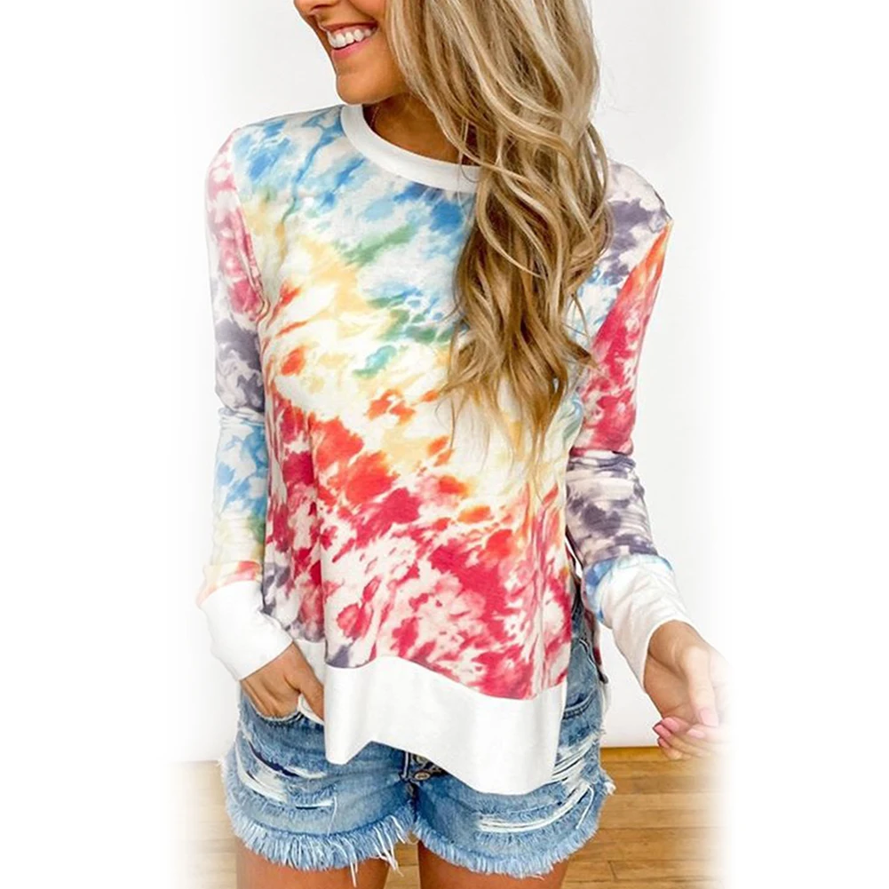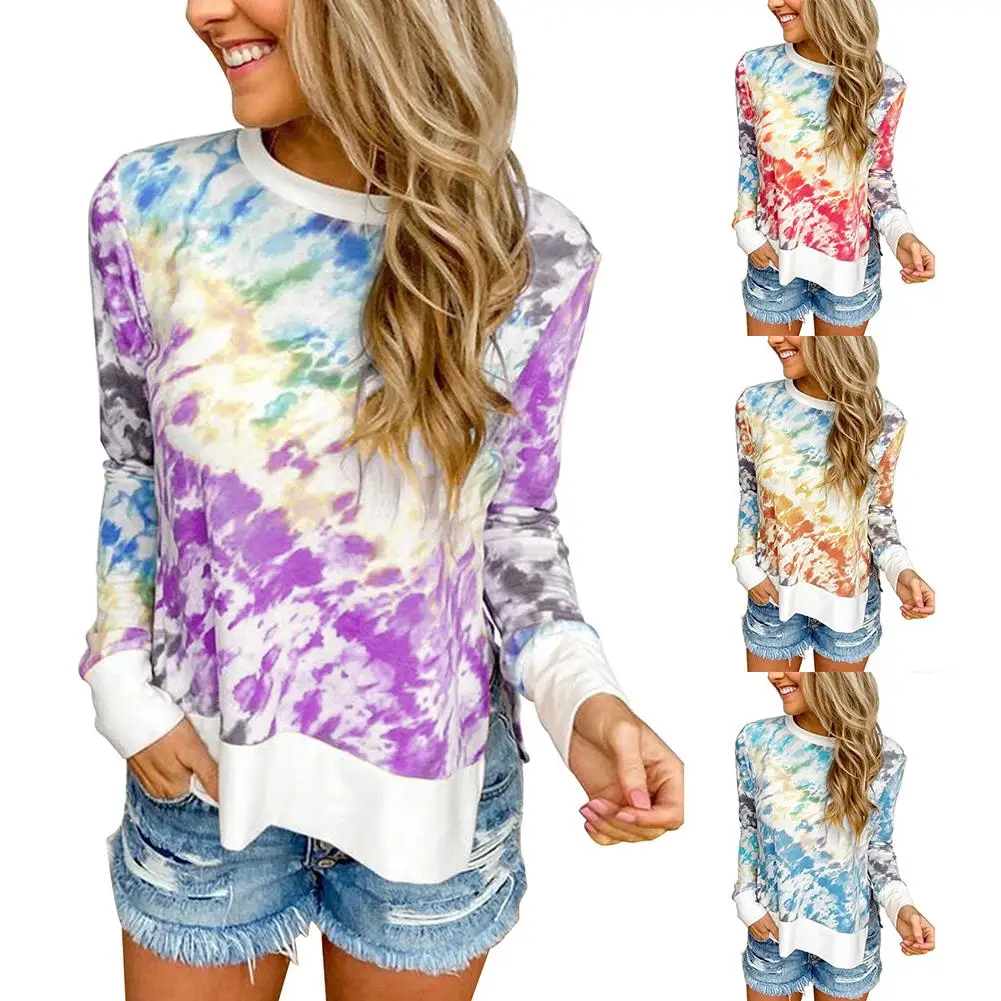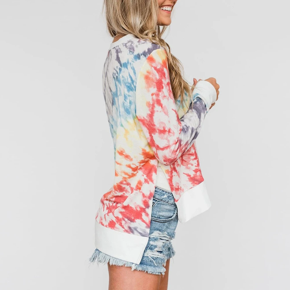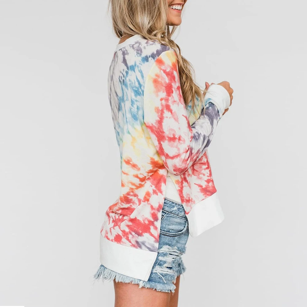 С градиентным цветом, краской для галстука и продольным АСИММЕТРИЧНЫМ ПОДОЛОМ добавьте Модные элементы в эту блузку.