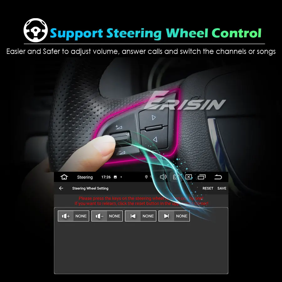 -Поддержка управления рулевым колесом, проще и безопаснее регулировать громкость, отвечать на звонки и переключать песни во время вождения.