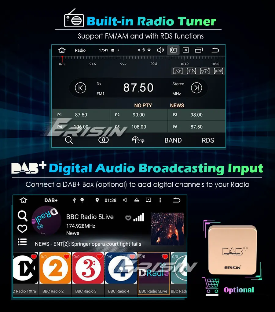 -Встроенное приложение DAB Player: Да, просто подключите DAB + Box, чтобы использовать эту функцию