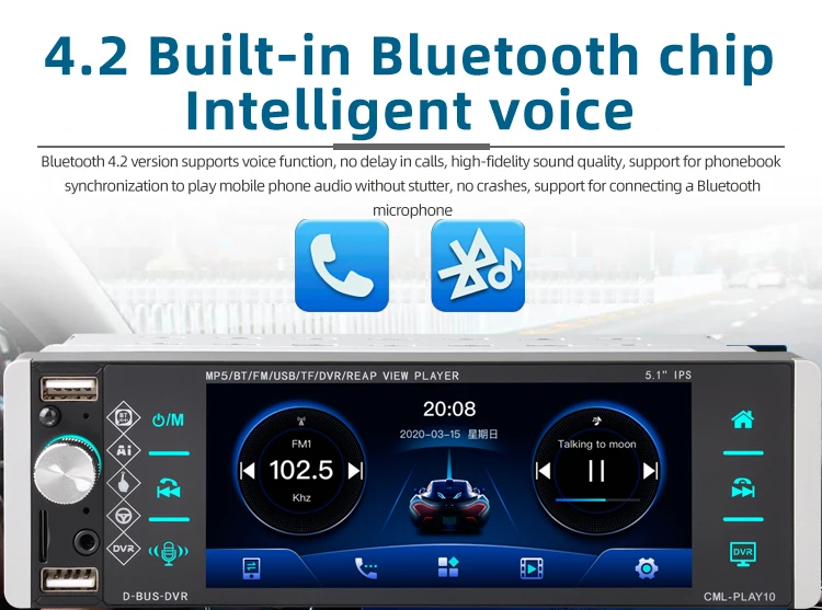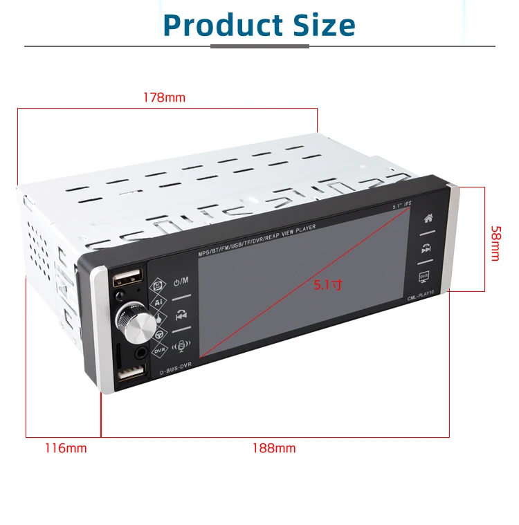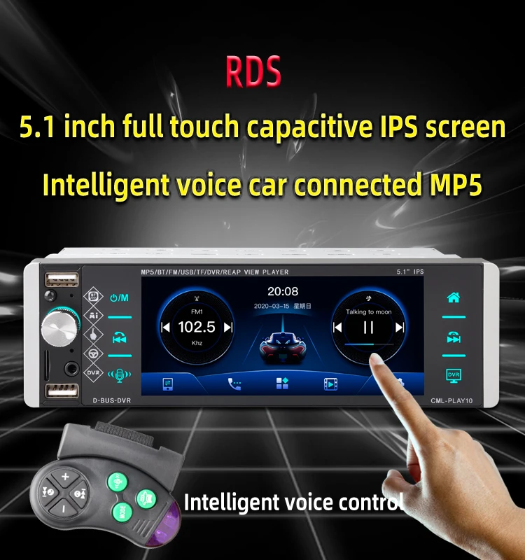 Продукт содержит: 5,1-дюймовый автомобильный mp5 хост * 1, Пульт дистанционного управления * 1 Голосовое рулевое колесо с дистанционным управлением * 1 Руководство * 1 Шнур питания * 2