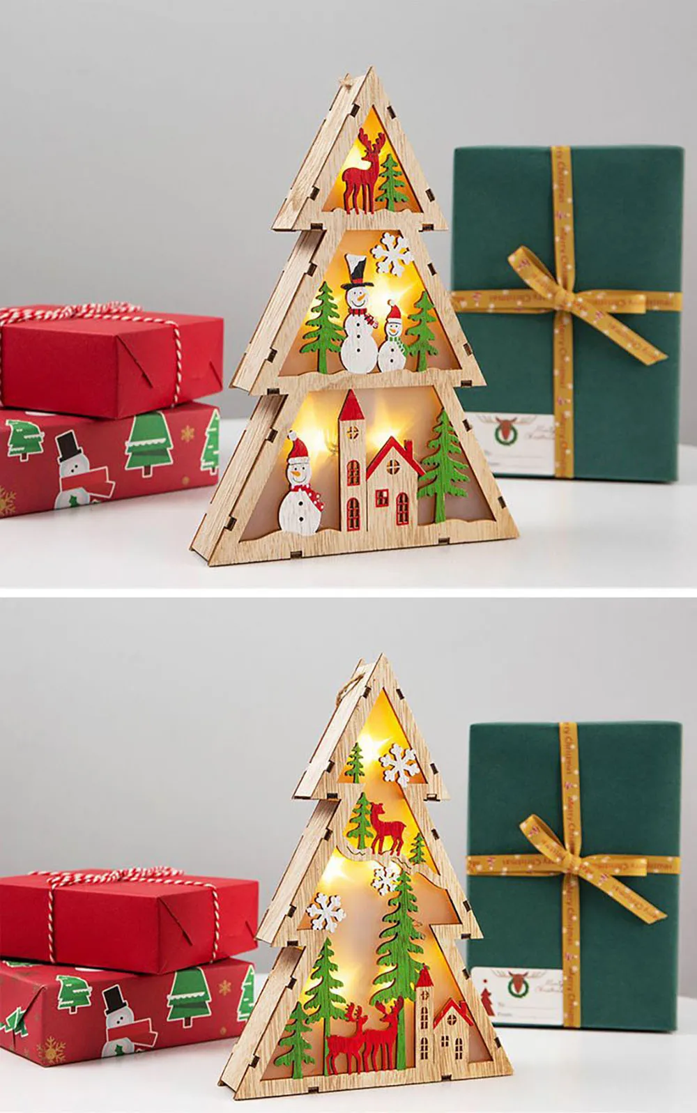 Новый деревянный светящийся светильник для рождественской елки, украшение со светодиодным рисунком снеговика, рождественский подарок, украшения для торгового центра