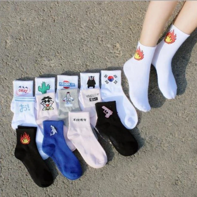 Женские носки на каждый день Harajuku Корея японский хлопок котенок пламя Ulzzang носки мужские китайские кактусовый пистолет инопланетяне Студенческие Носки