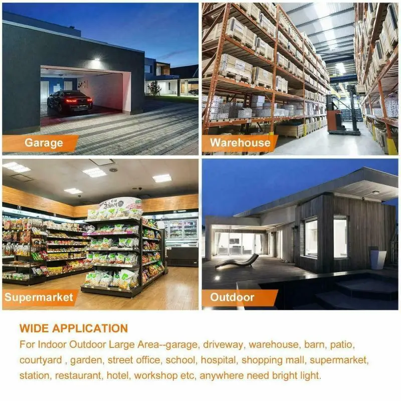 Отличная альтернатива традиционным флуоресцентным лампам для гаражей, подвалов, магазинов, мастерских, общественных объектов, комнат отдыха, складов, амбаров, комнат оборудования и других промышленных рабочих мест с освещением большой площади.