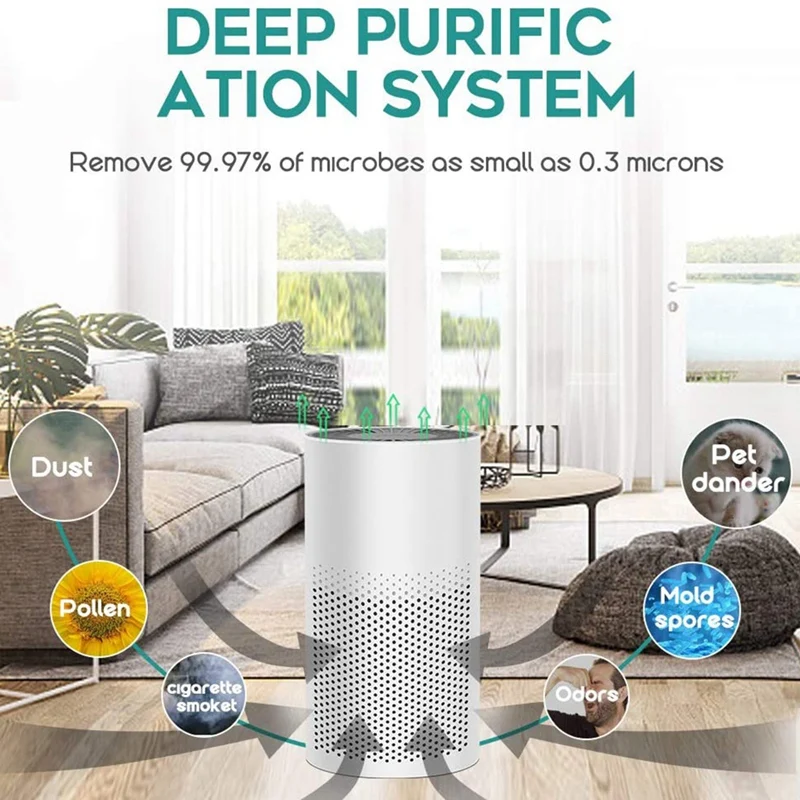 Компактный размер и отличная производительность-этот портативный очиститель воздуха является стоячим дизайном вентиляции. С всенаправленным углом 360 градусов, 1150 воздушные отверстия для увеличения потока воздуха и повышения эффективности очистки воздуха путем быстрого и точного вдыхания большого количества воздуха для достижения высокой производительности (до 2800 об/мин) двигатель постоянного тока для сильной циркуляции очищенного воздуха