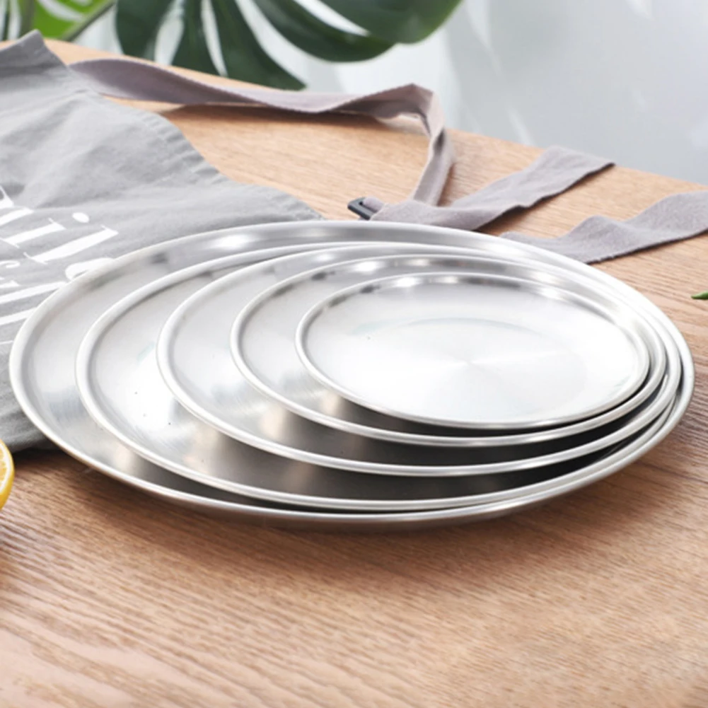 Нержавеющая сталь матовая круглая столовая тарелка посуда десерт блюдо для пиццы фруктовый поднос