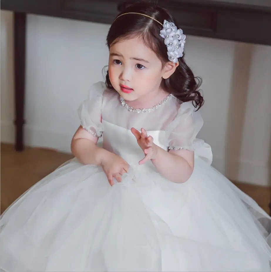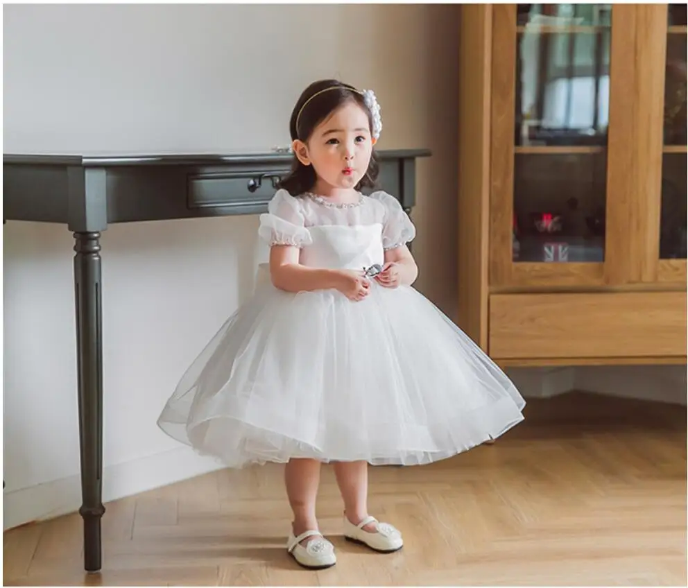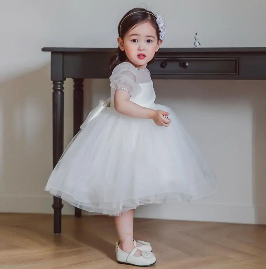 Vestido Infantil/платье для крещения для девочек; Белые вечерние платья для девочек на первый День рождения; Платье с цветочным узором для девочек; Рождественский костюм принцессы для маленьких девочек