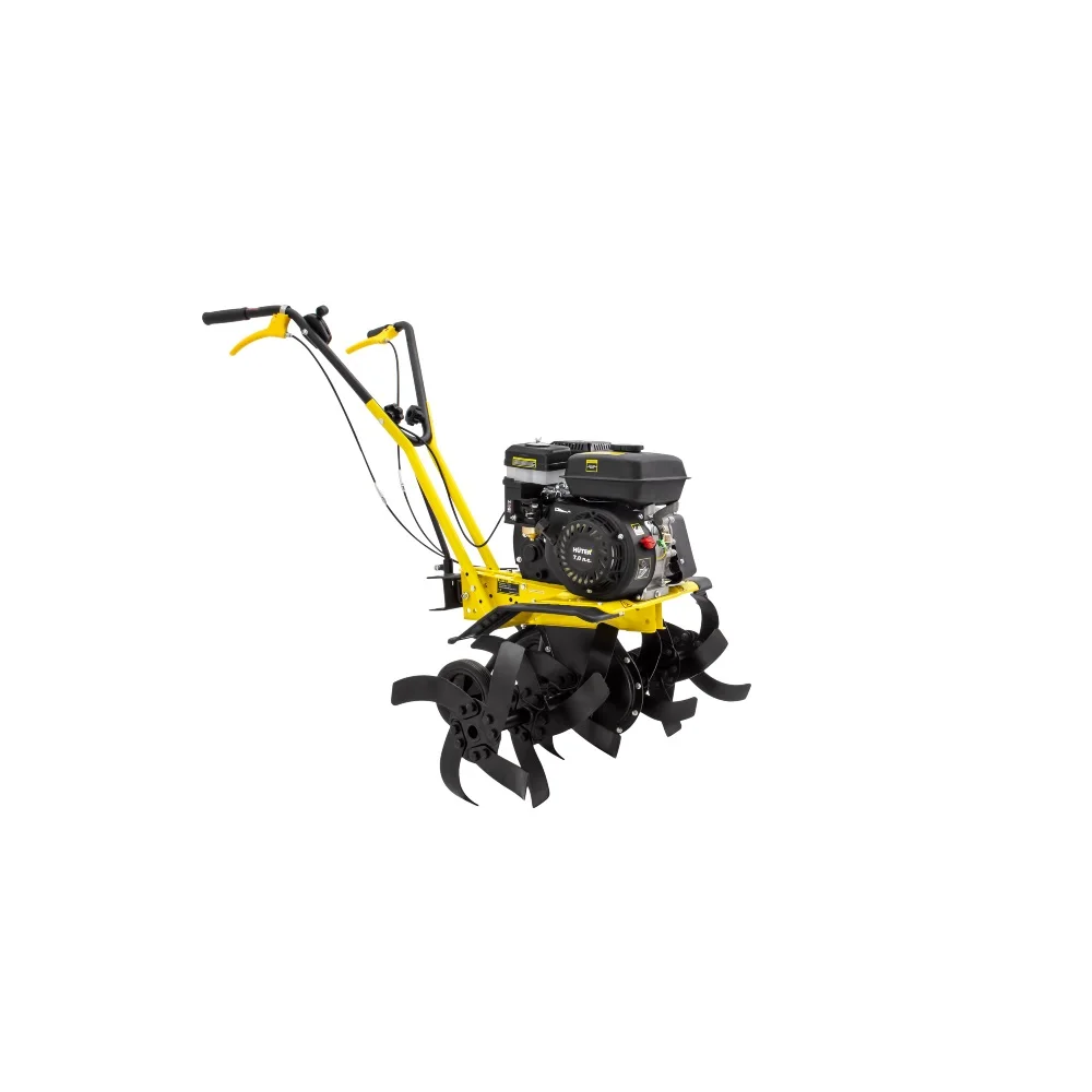 Чтобы обеспечить работоспособность и подвижность мотокультиватора, он был оснащен силовой установкой и приводимым ей в движение рабочим инструментом. Источником механической энергии служит надежный бензиновый четырехтактный одноцилиндровый двигатель внутреннего сгорания, мощностью 7 л.с. Двигатель имеет электронное зажигание, ручной стартер и потребляет чистый бензин марки АИ-92, для которого предусмотрена емкость на 3,6 литра. В качестве рабочего инструмента используется набор вращающихся двойных и одинарных стальных фрез. Фрезы съемные и позволяют изменять ширину пропашки в зависимости от условий. Чтобы оператор не получил случайный ушиб от отлетевшего камня или кома земли, фрезы прикрыты сверху специальными щитками. Устройство оснащено, так же, передним опорным колесом и металлическим регулируемым сошником, позволяющим фиксировать глубину вспашки.