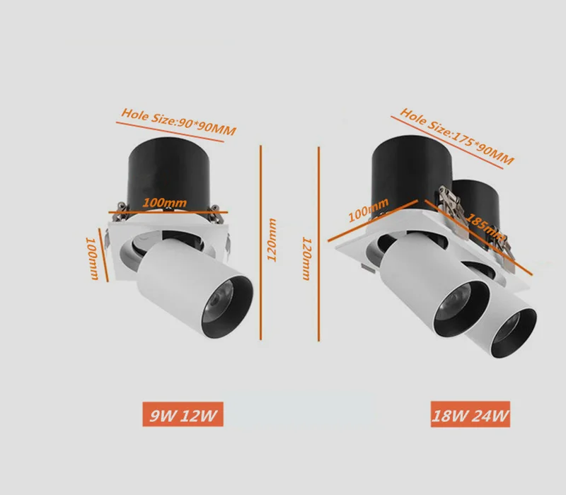Input Voltage:AC85-265V/110V/220V 50/60Hz Power:9W/12W/18W/24W Dimmable:Yes Color Rendering Index(CRI):>Ra85 Beam Angle:24° LED CHIP:C0B Chip(Epistar) Luminous Flux:95~110LM/W Temperatures:-25 to 45° Level of Protection:IP52 Color Temperature:Warm White:(2700K-3000K); Natural White:(4000K-4200K);Cold White:(6000K-6500K) Life:50000~80000 Hours Approved:CE/RoHS/FCC/3C Warranty: 3 Years Material:Die casting Aluminum +Lens Origin:Guangdong(China)