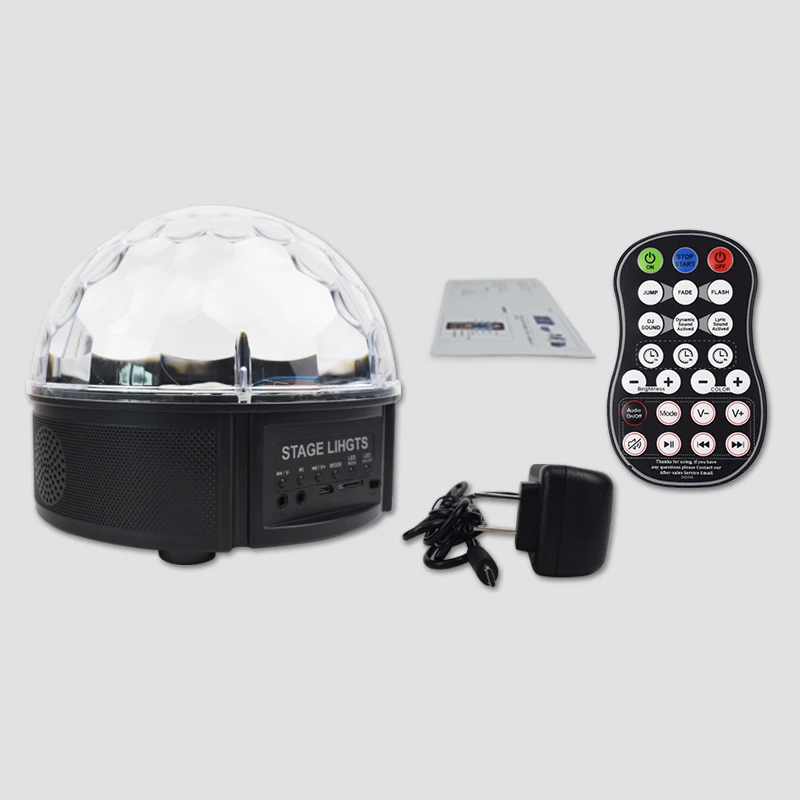 Название продукта: сценический светильник Вольт: AC90V-240V 50 Гц-60 Гц Рабочая среда: 10-40 ℃ Время предварительного нагрева: 2-8 минут Режим управления: дистанционное управление/Звуковое управление Мощность: 12 Вт Продукт Размеры: 19x19x17cm Вес брутто: 0,75 кг
