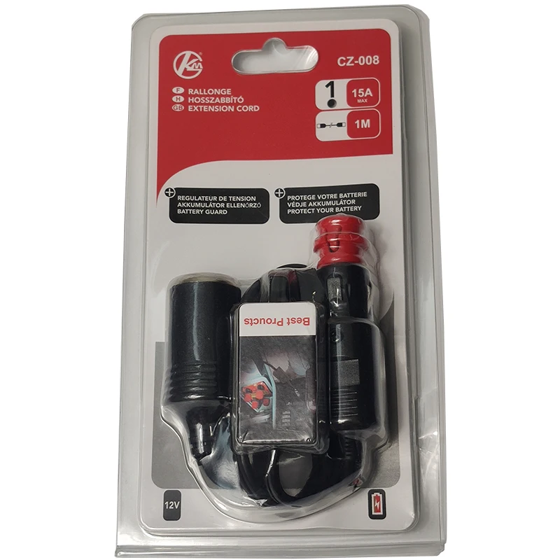 Номера товара: JKM-CZ-008 Название продукта: Европейская Зажигалка для прикуривателя для мужчин и женщин, защита от пониженного напряжения (закрутите красную головку для автомобильного прикуривателя BMW) Использование продукта: Расширение автомобильного прикуривателя используется для автомобильных насосов, автомобильных холодильников, инверторов, домкратов, чашек с горячей водой, регистраторов вождения, Обогрев сидений автомобиля и других электрических приборов. Характеристики провода: SPT-2/18AWG 0.824mm2 OD: 3,5*7,0 мм Материал: Абсолютно новая голая медь/ПВХ Цвет внешнего вида: Черный Характеристики входного разъема: Европейская Мужская головка прикуривателя (поворот Красной головки для автомобильного прикуривателя BMW s) плюс распределительная коробка с защитой от низкого напряжения Материал: АБС-пластик/медь Характеристики выходного разъема: инжектор прикуривателя Женская головка Длина общая Длина: 1,0 M (каблук 10 см) 3.28FT(153 г) Стандарт полярности: Рабочее напряжение: 12-24 В Номинальный ток: 10A Защитное напряжение: 11,6 V Максимальная мощность: 120 Вт Особенности: 1. Защита от недостаточного напряжения, (ниже 11,6 V может автоматически, обеспечивая защиту аккумулятора от чрезмерно разряжена) 2. Защита от перегрузки по току (для предотвращения чрезмерного тока от выгорания цепи для защиты электронных продуктов) 3. Защита от короткого замыкания. (Предотвращает повреждение батареи от короткого замыкания и вызывает пожар)