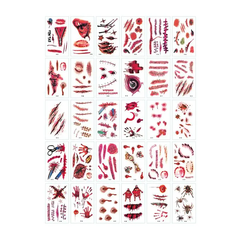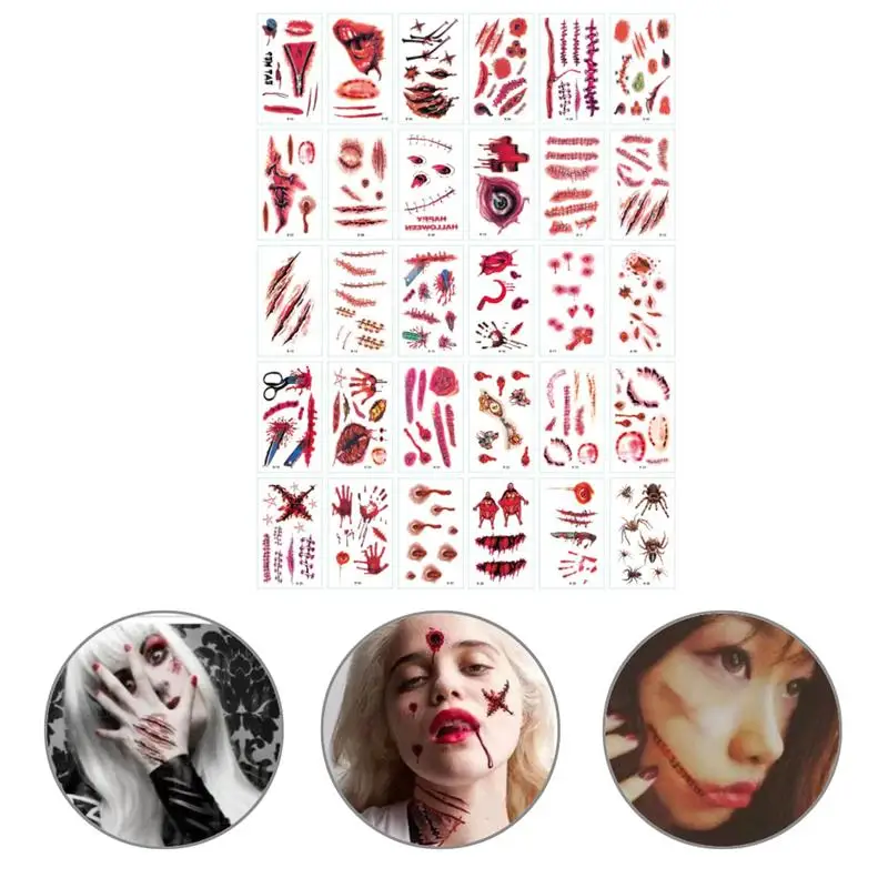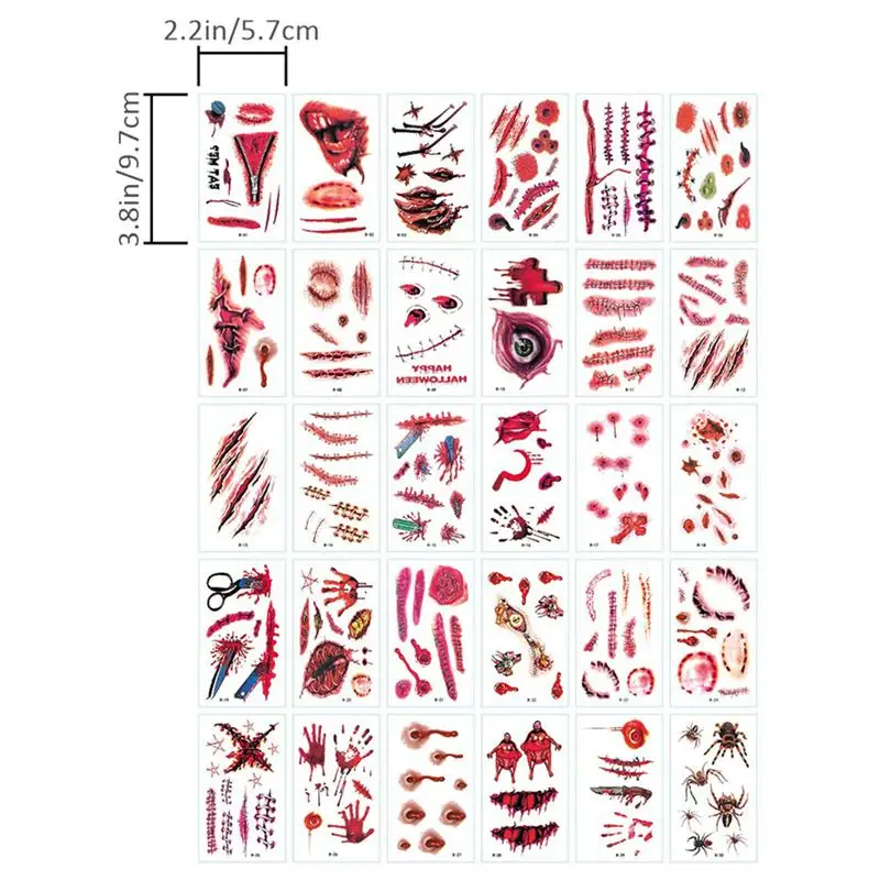 90 шт Хэллоуин татуировки стикер s поддельные водонепроницаемые реалистичные Ужасы кровавая наклейка "шрам" стикер