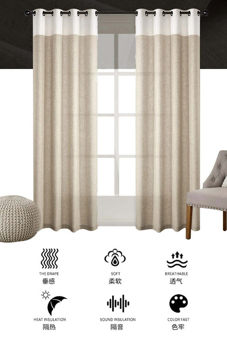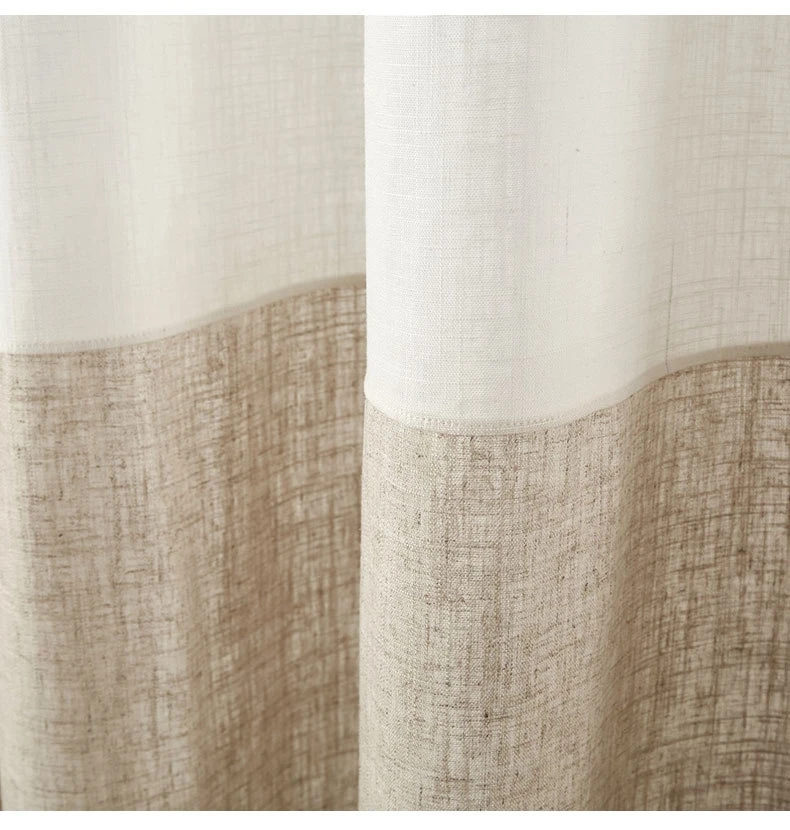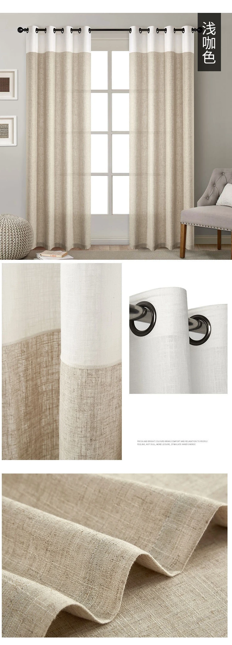 Японский стиль Конопляный занавес Современный Чистый Цвет Сращивание хаки льняная ткань занавеска для спальни гостиной Оконные Занавески для дома