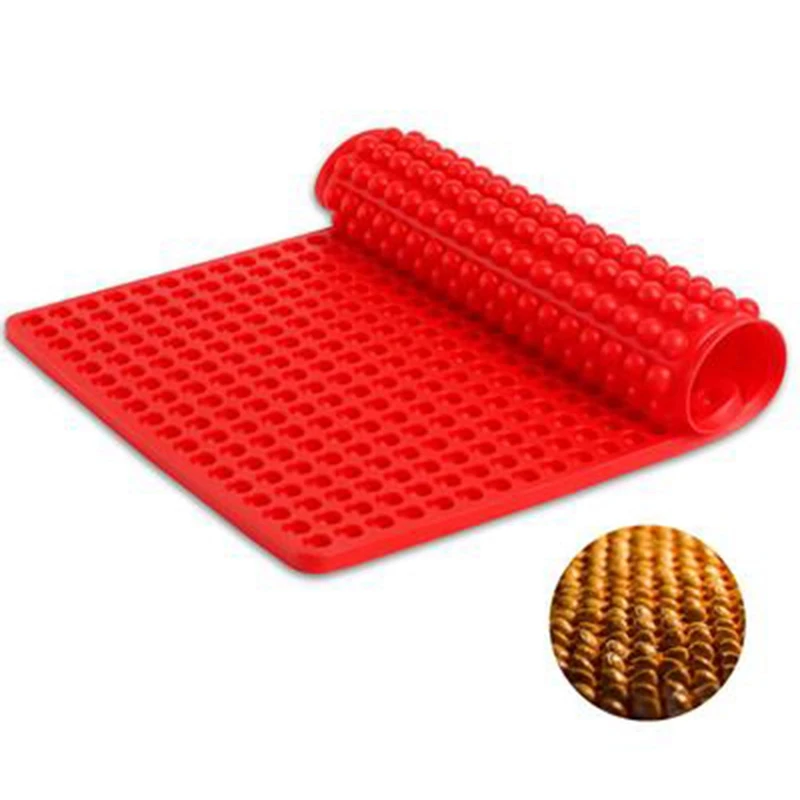 Коврик уникально разработан с поверхностью, похожей на пирамиду, которая обеспечивает идеальное распределение тепла, а также сливает излишки масла, жиров и смазки с пищи, что делает вас с восхитительным