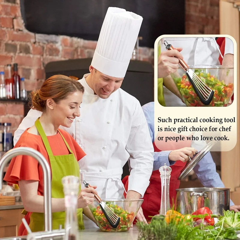 Антипригарная посуда: шпатель с мягким краем имеет вес, прочный светильник из нержавеющей стали с силиконовым наконечником не царапает ваши кастрюли, и служит для того, чтобы вы каждый раз получали красивую и вкусную еду; такой практичный инструмент для приготовления пищи также является хорошим подарком для шеф-повара или людей, которые любят повара