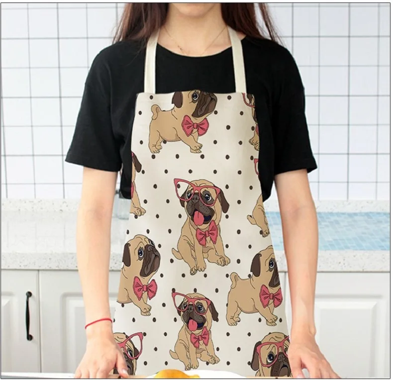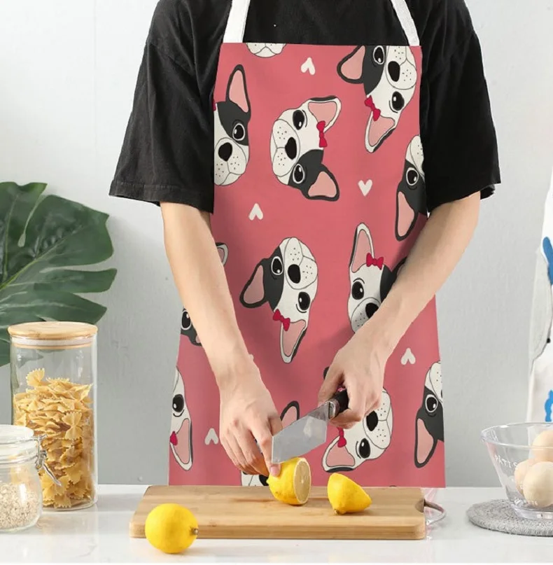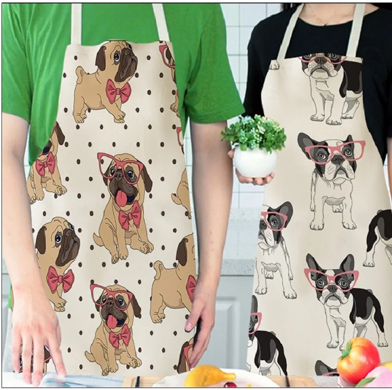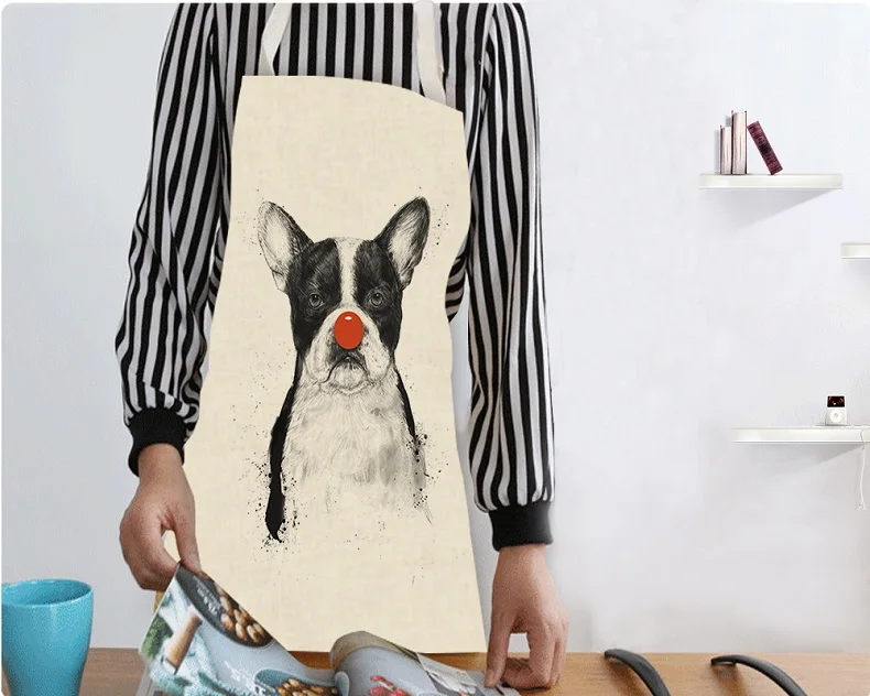 Хлопковые льняные фартуки для кухни с принтом бульдога, унисекс, вечерние фартуки для кухни, кухонный нагрудник, забавный фартук без рукавов, инструменты для уборки дома