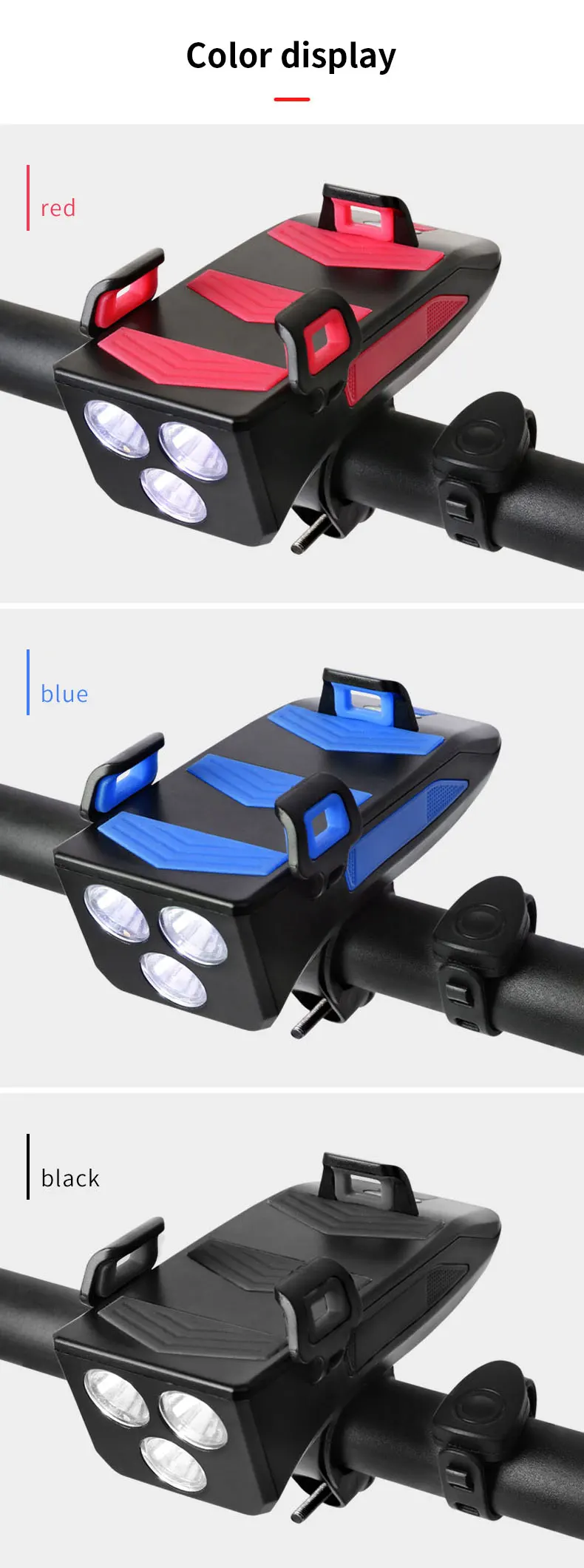 4 в 1 Многофункциональный: велосипедный светильник с рожком и держателем с 400 люменов 3 светодиодный светильник s/high decibel horn/4000 мА · ч USB перезаряжаемая батарея, экономит много места, чтобы уменьшить проблемы в путешествиях. Включенный задний светильник перезаряжается, а также имеет три режима освещения.