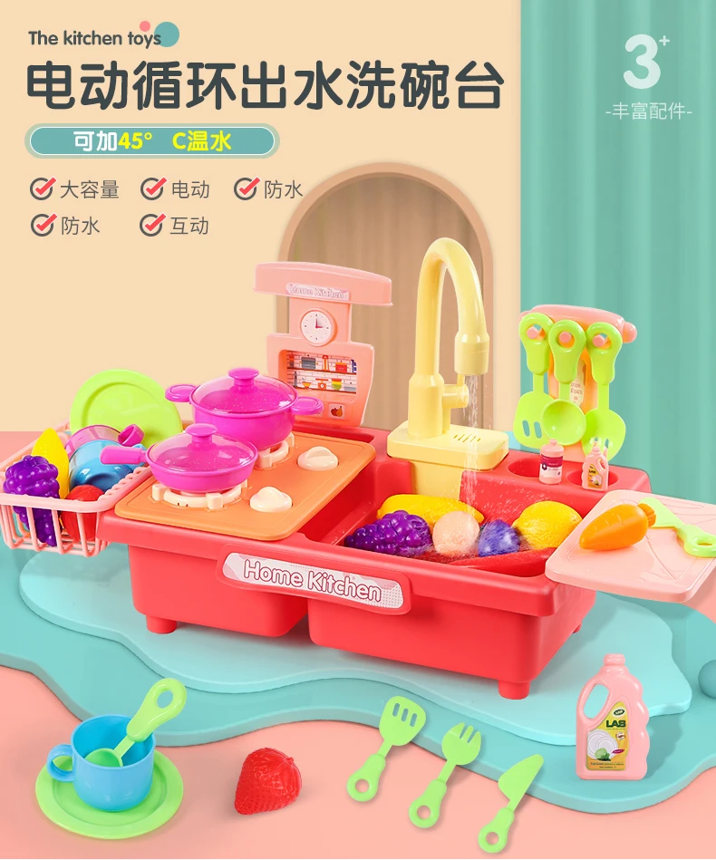Этот набор кухонной раковины поможет детям научиться базовому стилю. Яркие и многоцветные цвета привлекают внимание детей, повышают их интерес, а сочетание цветов может эффективно улучшить их познавательные способности цвета. Хорошо развивать ум ребенка, творческие способности и способность мышления. Идеальный подарок для детей, чтобы принести им больше удовольствия и сюрприза. Дети могут играть в теплую воду и избегать холода