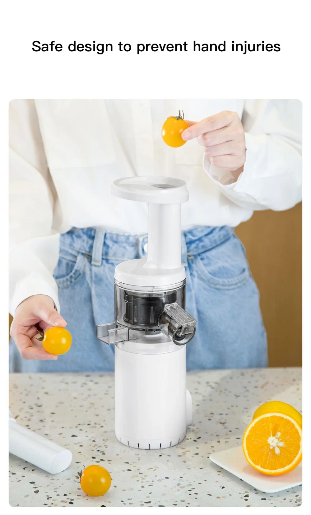 Мини-соковыжималка без пузырьков и помпоны. Измельчение и сжатие замедляют скорость окисления фруктов,