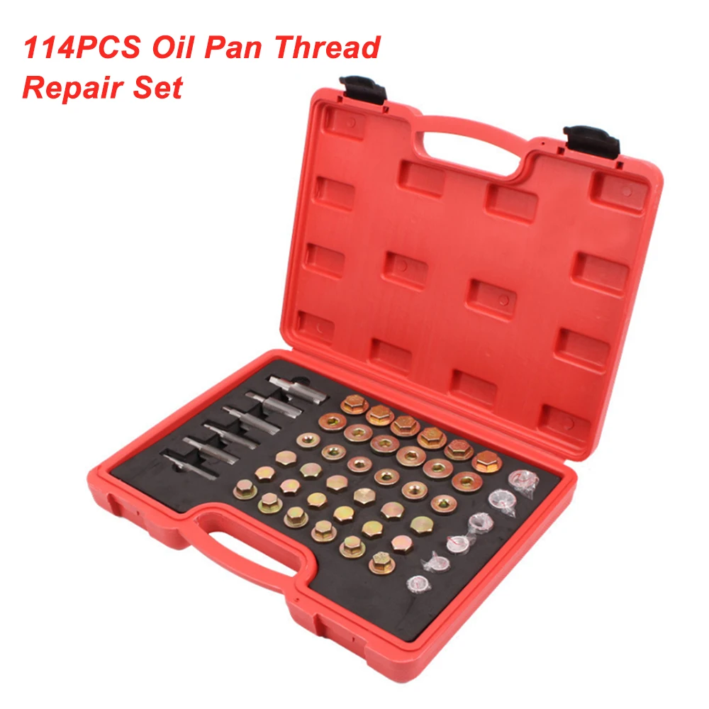 Этот комплект для ремонта пробки слива масла включает в себя резьбовые краны, винты слива масла и уплотнительные шайбы, предусмотренные в выдувном формованном чехле. Он подходит для ремонта бака, КПП и линий.