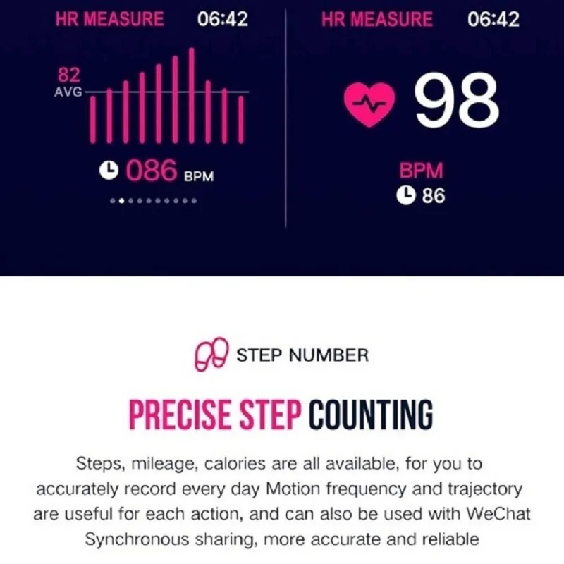 1. Функция отображения браслета: отображение времени, отображение иконок батареи, отображение даты, отображение дня недели, стандартная функция упражнений (количество шагов, расстояние, калории), несколько спортивных режимов (ходьба, бег, езда на велосипеде, скакалка, бадминтон, Баскетбол), футбол, плавание), пульс, определение артериального давления, Обнаружение кислорода в крови, отображение времени сна, регулировка яркости экрана, управление музыкой.