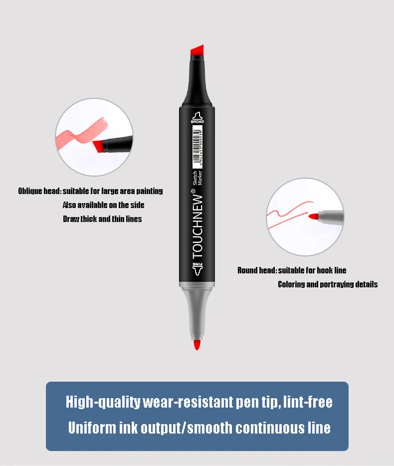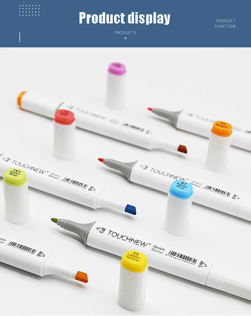 Наименование товара: Художественные маркеры Характеристика: маркеры с двойной головкой/на спиртовой основе/манга эскиз Применение: анимация/продукт/стандарт/одежда/Пейзаж/студент/внутренний/строительный дизайн Длина: 6.1 дюйм/15,5 см Цвет корпуса: белый/черный (оставьте сообщение) Цвета: 24/30/40/60/80/108/168 цветов Обратите внимание: Яркие цвета идеально подходят для различных видов применения, от анимационных, иллюстрационных, архитектурных и дизайнерских эскизов. С уникальным точным наконечником с одной стороны и широким зубчатым наконечником с другой, TOUCHNEW marker предлагает художникам и дизайнерам больший диапазон толщины линии, чем когда-либо прежде. Доставка чернил может быть идеально контролирована, чтобы обеспечить точность рисования. Эргономичный прямоугольный корпус устойчив к катанию на рабочих поверхностях и обеспечивает идеальное сцепление, которое позволяет избежать пятен и пятен. Специально разработанная Защитная крышка аккуратно стекает и предотвращает повреждение наконечников. TOUCHNEW маркер содержит чернила на спиртовой основе, которые не растворяют Печатный чернильный Тонер, что позволяет без запаха, яркие цветные рисунки на печатных материалах. Бесцветный блендер волшебный инструмент для градации Маркер без цвета используется для смешивания, осветления базового цвета и для различных других эффектов. Нанесите желаемый цвет на цвет Блендер, затем скользите по изображению, где вы хотите создать смесь. 1. Эргономичный дизайн корпуса для идеального захвата 2. В настоящее время 168 ярких цветов 3. Двухсторонний с тонкими и широкими наконечниками 4. Лучший контроль потока чернил, абсолютно нет размазывания или кровотечения 5. Не имеет запаха