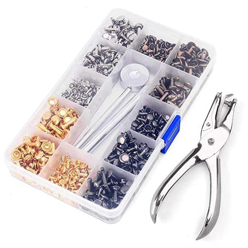 360 шт., 3 размера, кожаные заклепки, двойная крышка, заклепки, трубчатые металлические шпильки с 4 фиксаторами, набор инструментов для рукоделия, кожа, 4 цвета (Go Различные размеры и цвета могут удовлетворить ваши различные требования к кожаному ремеслу, отличные практичные основные инструменты: плоскогубцы легко использовать для штамповки. Двусторонняя основа подходит для кожаных заклепок разных размеров