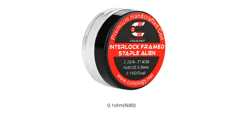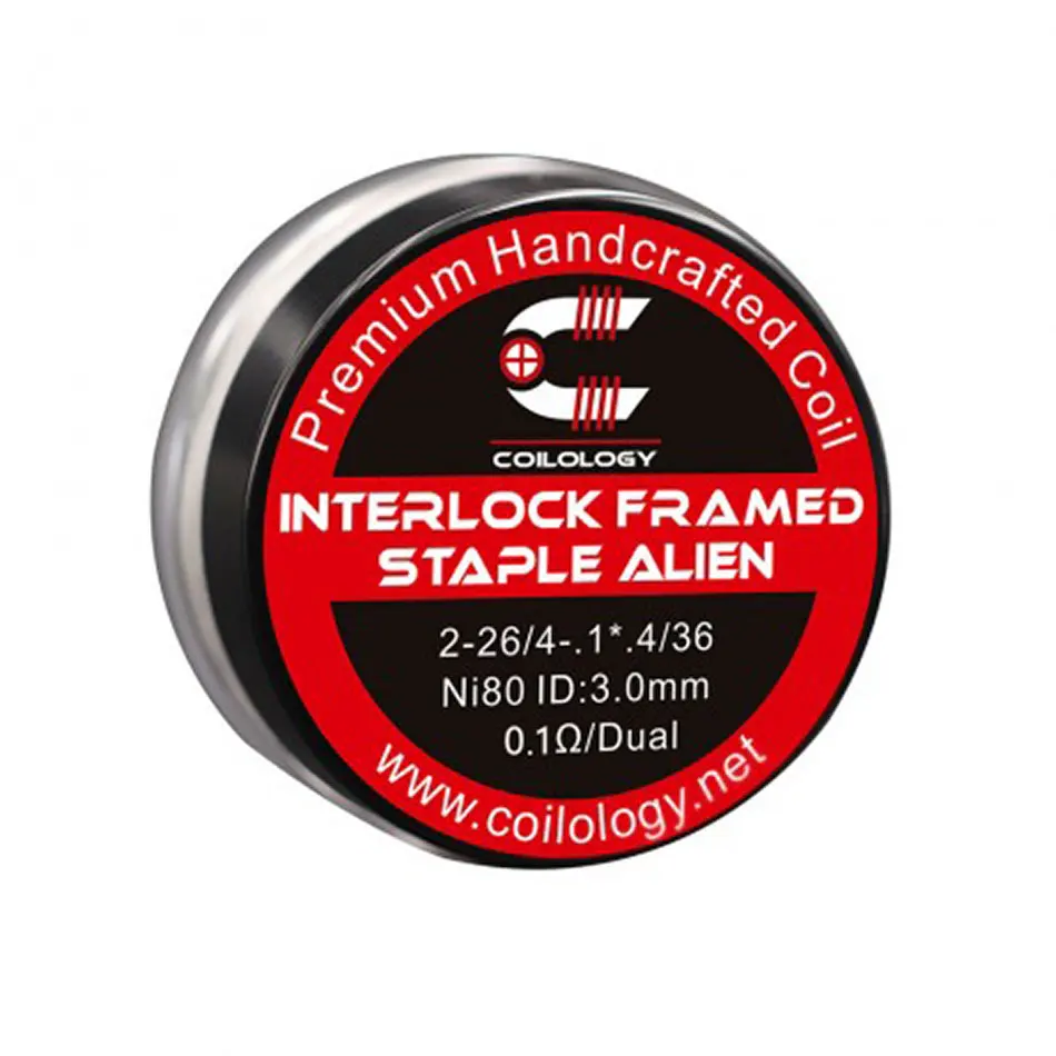 • Здесь идет набор Coilology Interlock Framed Staple Alien Coil Set. Interlock Framed Staple Alien-это вариации Framed Staple Alien. Так же, как и Alien Coil, катушка и хлопок насыщают сок капиллярным действием. Coilology Interlock каркасные штапельные катушки Alien обеспечивают оптимальный вкус и производство пара.